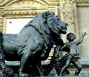 La columna mide 36 mts. De alto y en su base las esculturas representan la Ley, la Paz, la Justicia y la Guerra.