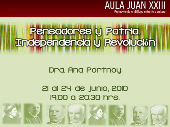 Charlas sobre los ideólogos de la Independecia y la Revolución 17 junio 201017 junio 2010 / anaportnoy Informes: 8401 5500 correo electrónico: info@aulajuanxxiii.com Comparte:Tweet Haz clic para enviar un enlace por correo electrónico a un amigo (Se abre en una ventana nueva) Correo electrónico Más Haz clic para imprimir (Se abre en una ventana nueva) Imprimir Me gusta Cargando... Relacionado