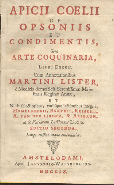 En realidad hubo tres gastrónomos romanos llamados Apicio pero ninguno escribió el libro: se cree que éste fue elaborado por un autor que ligó su propio nombre al de los gastrónomos para promover su obra. Entre 1483 y 1486 se reprodujo en Europa. De este mismo autor se conoce otro texto intitulado De Opsoniis et Condimentis.