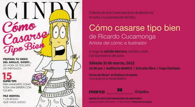 Presentación del libro «Cómo casarse tipo bien» de Ricardo Cucamonga en MARCO 29 marzo 2012 / anaportnoy Comparte:Tweet Haz clic para enviar un enlace por correo electrónico a un amigo (Se abre en una ventana nueva) Correo electrónico Más Haz clic para imprimir (Se abre en una ventana nueva) Imprimir Me gusta Cargando... Relacionado