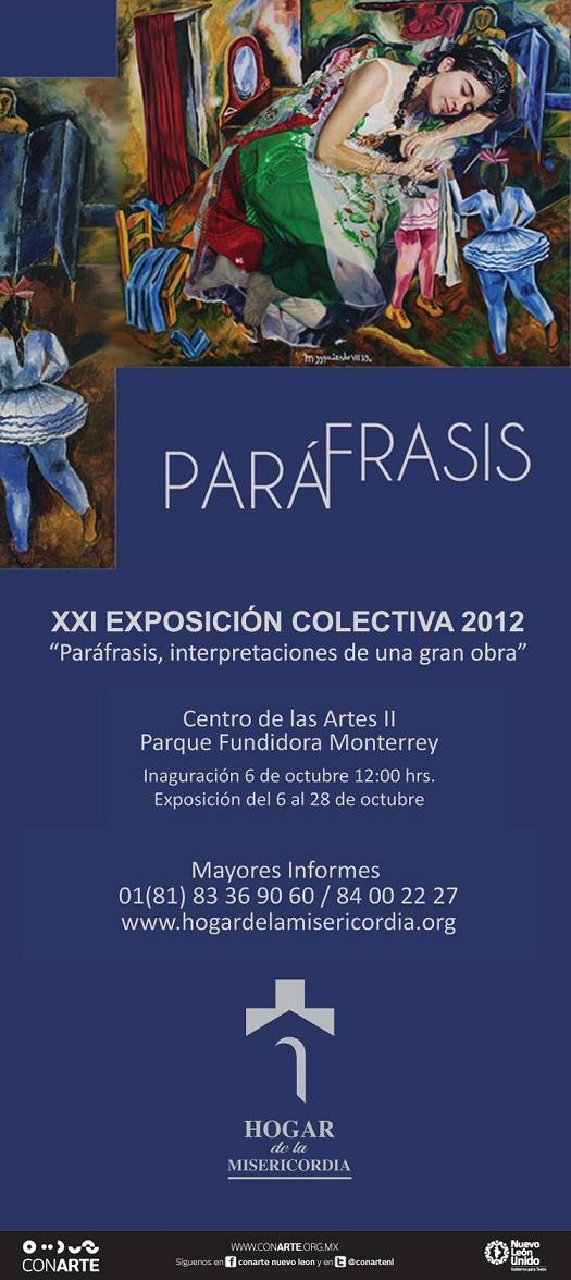 XXI Exposición colectiva 2012: «Paráfrasis, interpretaciones de una gran obra» 4 octubre 2012 / anaportnoy / Deja un comentario Comparte:Tweet Haz clic para enviar un enlace por correo electrónico a un amigo (Se abre en una ventana nueva) Correo electrónico Más Haz clic para imprimir (Se abre en una ventana nueva) Imprimir Me gusta Cargando...