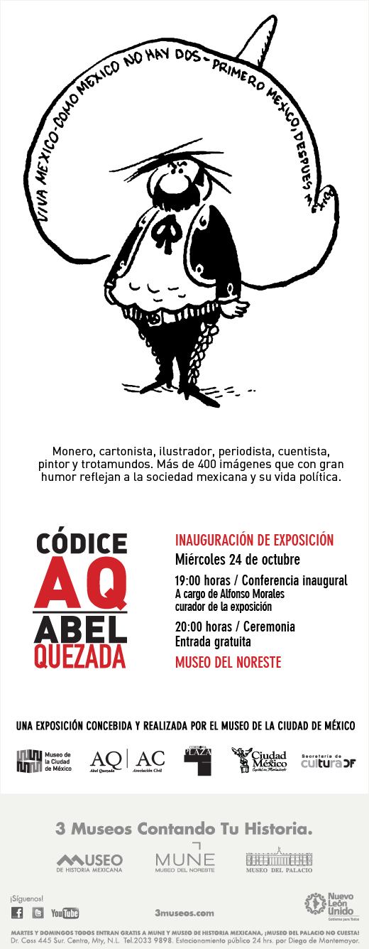 Comparte:Tweet Haz clic para enviar un enlace por correo electrónico a un amigo (Se abre en una ventana nueva) Correo electrónico Más Haz clic para imprimir (Se abre en una ventana nueva) Imprimir Me gusta Cargando... Relacionado «Códice AQ: Abel Quezada» en el Museo de Historia Mexicana 22 octubre 2012 / anaportnoy / Deja un comentario