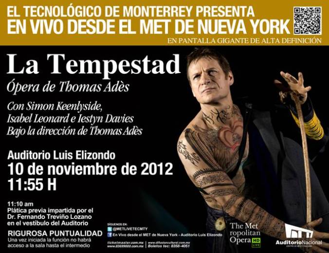 Basada en la obra de William Shakespeare, Thomas Adès creó la ópera «La Tempestad», propuesta contemporánea que será proyectada mañana en el ciclo «En Vivo desde el Met de Nueva York», en el Auditorio Luis Elizondo, a las 11:55 horas.