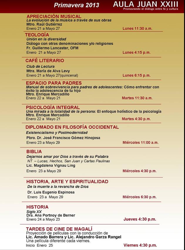 Aula Juan XXIII: Cursos primavera 2013