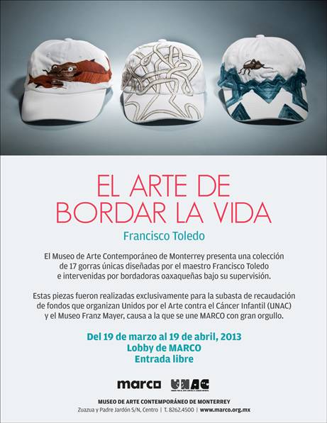 Francisco Toledo: «El arte de bordar la vida» en MARCO: 20 marzo 201320 marzo 2013 / anaportnoy / Deja un comentario Comparte:Tweet Haz clic para enviar un enlace por correo electrónico a un amigo (Se abre en una ventana nueva) Correo electrónico Más Haz clic para imprimir (Se abre en una ventana nueva) Imprimir Me gusta Cargando...