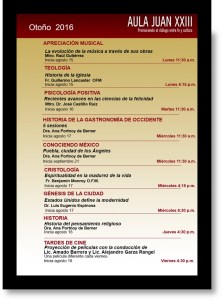 Cursos en el Aula Juan XXIII para el semestre de otoño 2016