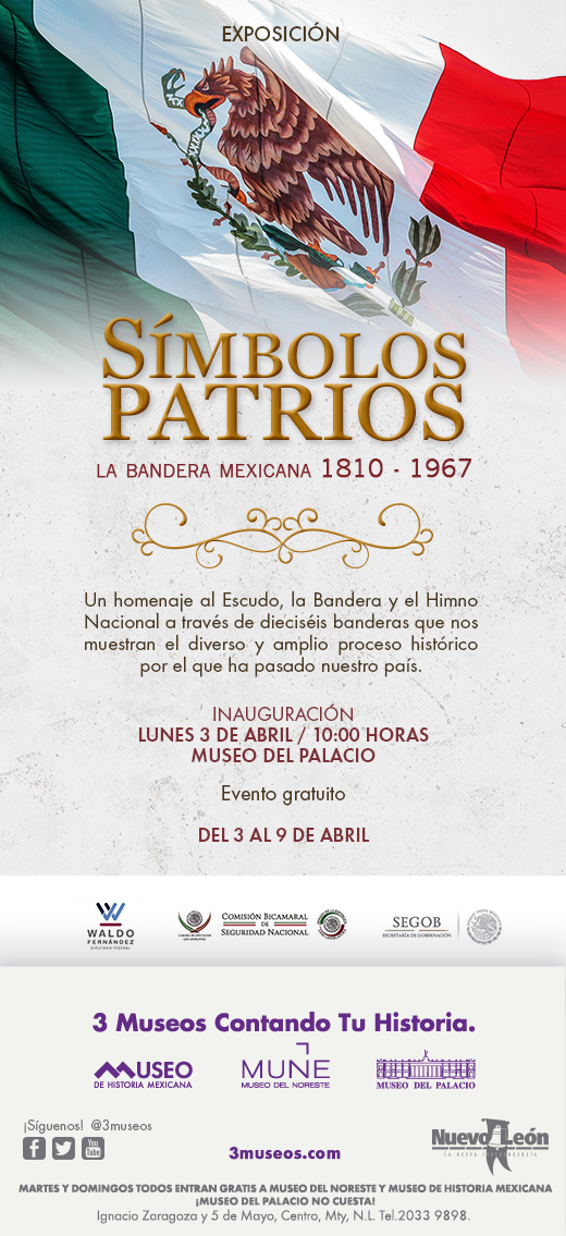 Exposición sobre la bandera mexicana en el Palacio de Gobierno de Nuevo León