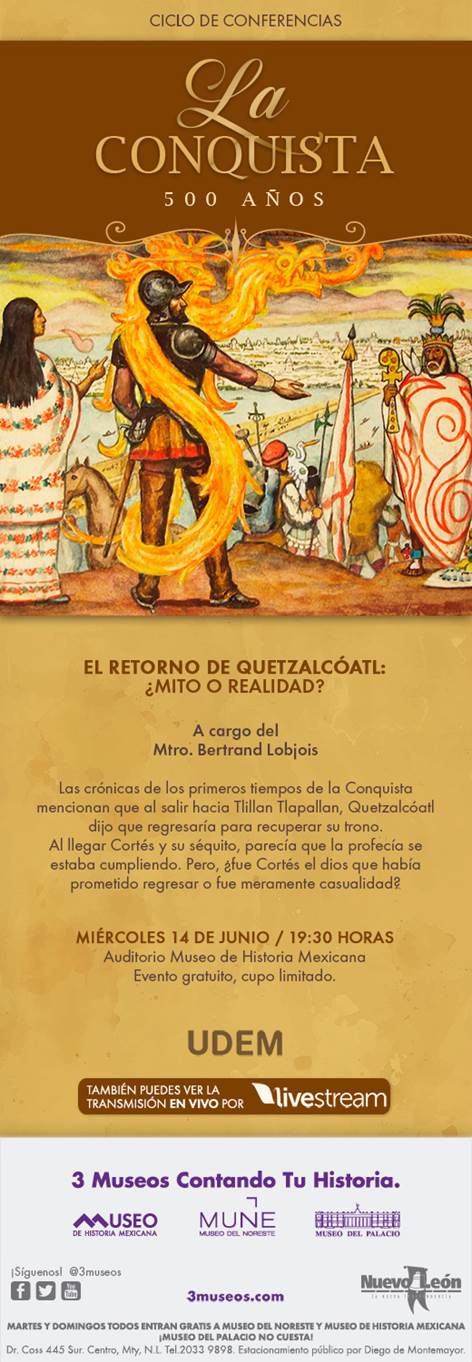 Comparte:Tweet Haz clic para enviar un enlace por correo electrónico a un amigo (Se abre en una ventana nueva) Correo electrónico Más Haz clic para imprimir (Se abre en una ventana nueva) Imprimir Me gusta Cargando... Relacionado Conferencia «El retorno de Quetzalcóatl: ¿mito o realidad?» en el Museo de Historia Mexicana 9 junio 2017 / anaportnoy / Deja un comentario