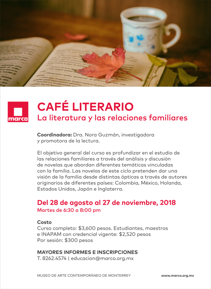 Café literario MARCO 2018: «La literatura y las relaciones familiares» 22 septiembre 201822 septiembre 2018 / anaportnoy Comparte:Tweet Haz clic para enviar un enlace por correo electrónico a un amigo (Se abre en una ventana nueva) Correo electrónico Más Haz clic para imprimir (Se abre en una ventana nueva) Imprimir Me gusta Cargando... Relacionado