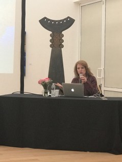 Durante el evento la expositora presentó varias fotografías de pósters, esculturas y pinturas de distintas épocas e interactuó con los asistentes analizando cada una de ellas y realizando preguntas sobre el significado de cada uno de los elementos que rodeaban cada trabajo.
