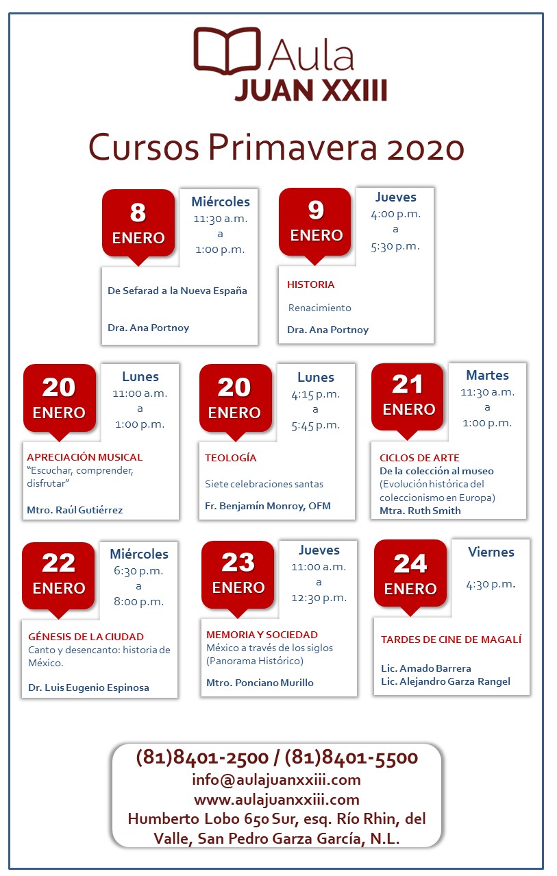 Informes: 8401-5500; correo electrónico info@aulajuanxxiii.com