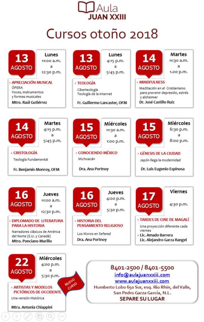 Aula Juan XXIII: Cursos primavera 2020