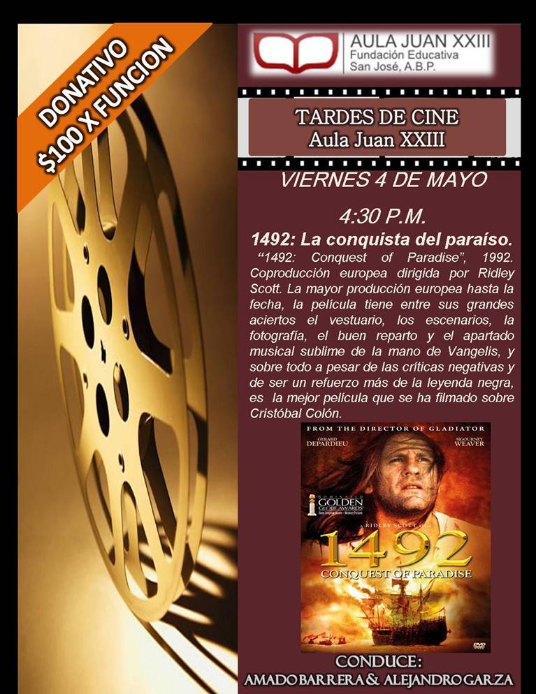 1492: La conquista del paraíso. “1492: Conquest of Paradise”, 1992. Coproducción europea dirigida por Ridley Scott. La mayor producción europea hasta la fecha, la película tiene entre sus grandes aciertos el vestuario, los escenarios, la fotografía, el buen reparto y el apartado musical sublime de la mano de Vangelis, y sobre todo a pesar de las críticas negativas y de ser un refuerzo más de la leyenda negra, es la mejor película que se ha filmado sobre Cristóbal Colón.